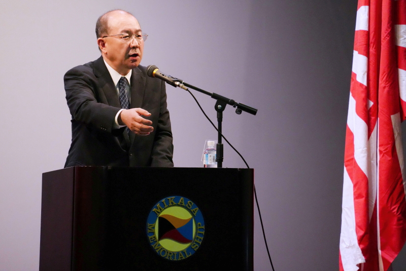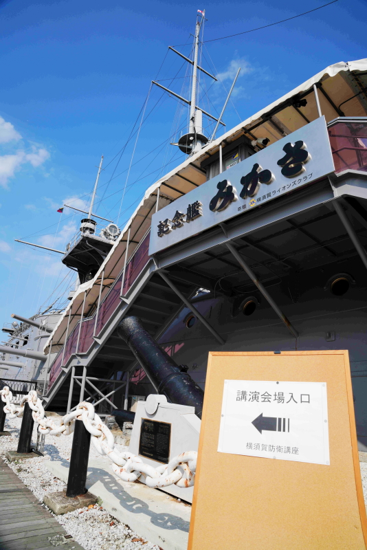 第1部の「講演会」は、講師に産経新聞社 上席執行役員 論説委員長の 榊原 智 氏をお迎えして、記念艦「三笠」の講堂で行われました。