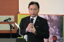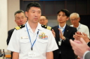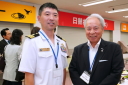 来賓紹介では、ソマリア沖・アデン湾における海賊対処行動及び中東地域における情報収集活動業務のため、出国を1週間後に控えた 飯尾 啓正 おおなみ艦長に激励の意味を込めてひときわ大きく拍手がわき起こりました。