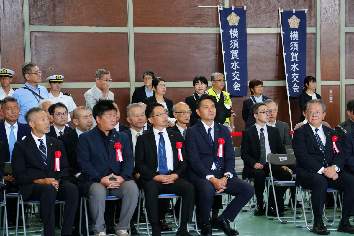 会場には横須賀市長代理副市長、神奈川県議会議員、横須賀市議会議員、船主協会関係者、海上保安庁関係者、各級指揮官、先任伍長や隊員、家族、防衛団体関係者、地元関係者など多数が参加して盛大な式典となり、横須賀水交会からも、当日は関連行事が重なっていたため、いつもより少人数ではありましたが、十数名が参加しました。