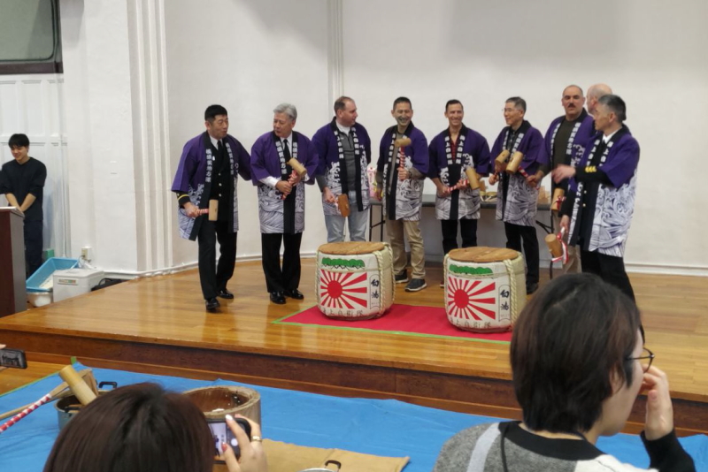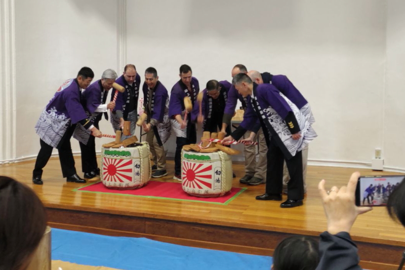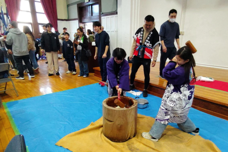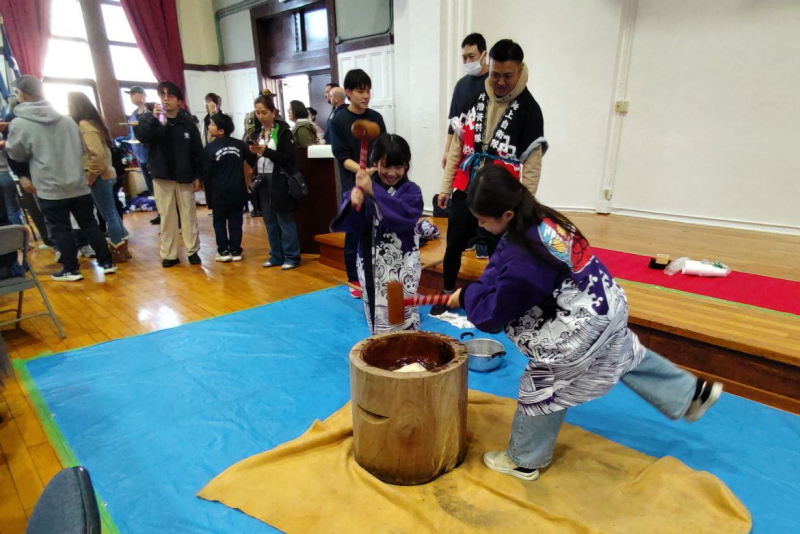 「ヨイショ〜!」という威勢の良い掛け声とともに鏡開きが行われ、メインのもちつきでは大人も子供も一緒になって、日本の伝統文化を楽しみました。