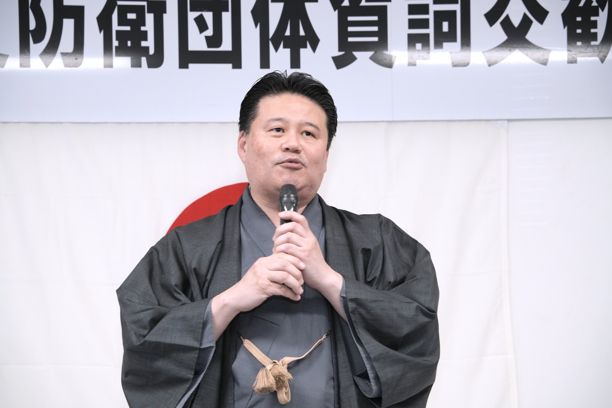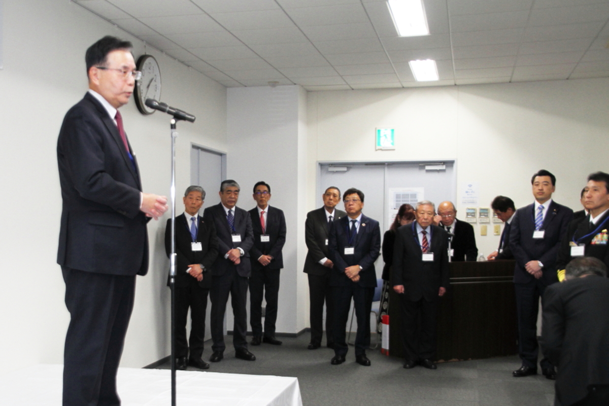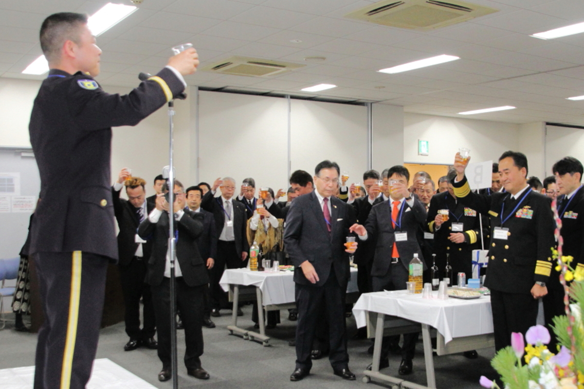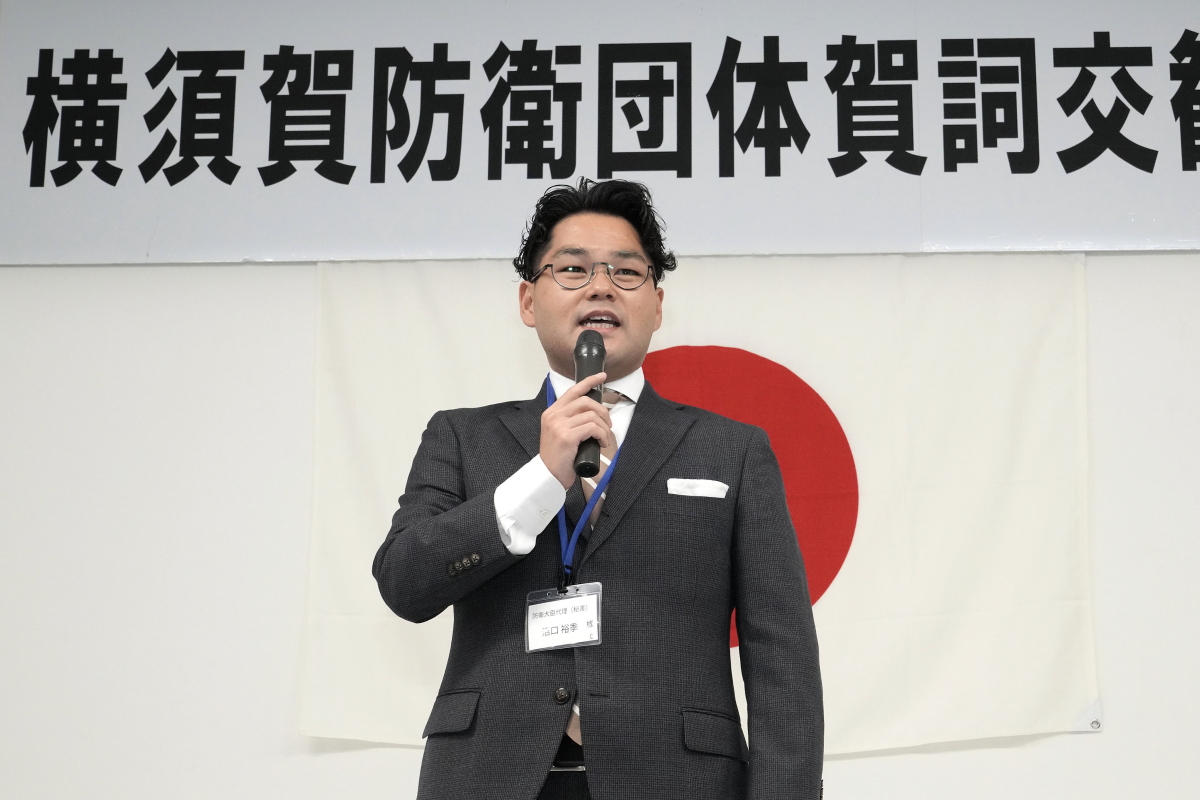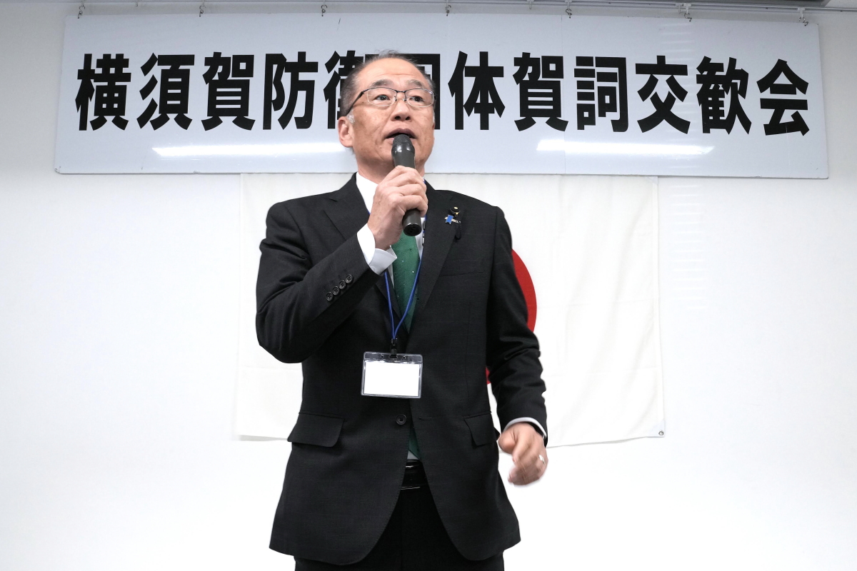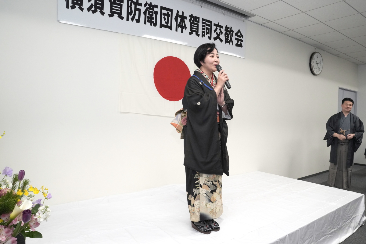令和8年1月17日(土)、冬日和の優しい日差しの下、横須賀防衛団体※共催(代表:平松廣司横須賀防衛協会会長)による「令和8年防衛諸団体新年賀詞交歓会」が横須賀商工会議所1階、多目的ホールにて開催されました。 本会は、横須賀地区に在籍する陸・海・空自衛隊の部隊等の長及び先任伍長のほか、国会議員、地方議会議員及び横須賀市長等を招いて新春の賀詞を交歓するとともに、自衛隊を激励し、併せて、各団体で会員相互の親睦を図ることを目的として開催しているもので、今年も会場に入りきれないほどの参加者が集いました。