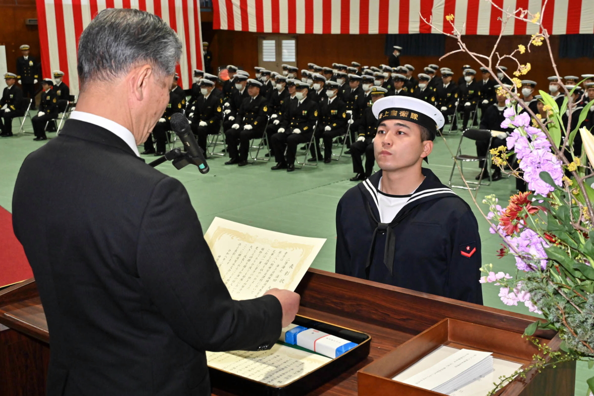 横須賀水交会(会長:松下泰士)では、令和8年2月16日(月)横須賀教育隊での修業式に参列し、激励賞を授与しました。 第388期練習員課程(46名)、第74期練習員(女性)課程(16名)の修業式が実施され、各課程1名に表彰状及び記念品が贈呈されました。 当日は2月ながら、過ごしやすい晴天で、体育館内に暖房が用意され、修業生はもとより、約60名の父兄、部内外来賓も快適に参列することができました。